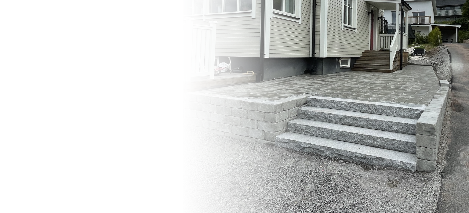 Vi ordnar allt från inköp av sten från olika leverantörer och hjälper till med idéer samt planering. Vi sköter sedan hela entreprenaden från schaktning, bortforsling av material och återfyllnad med rätt underlag för din stenläggning. Det är även av stor vikt att man lägger stenen med rätt fall för vattenavrinning.